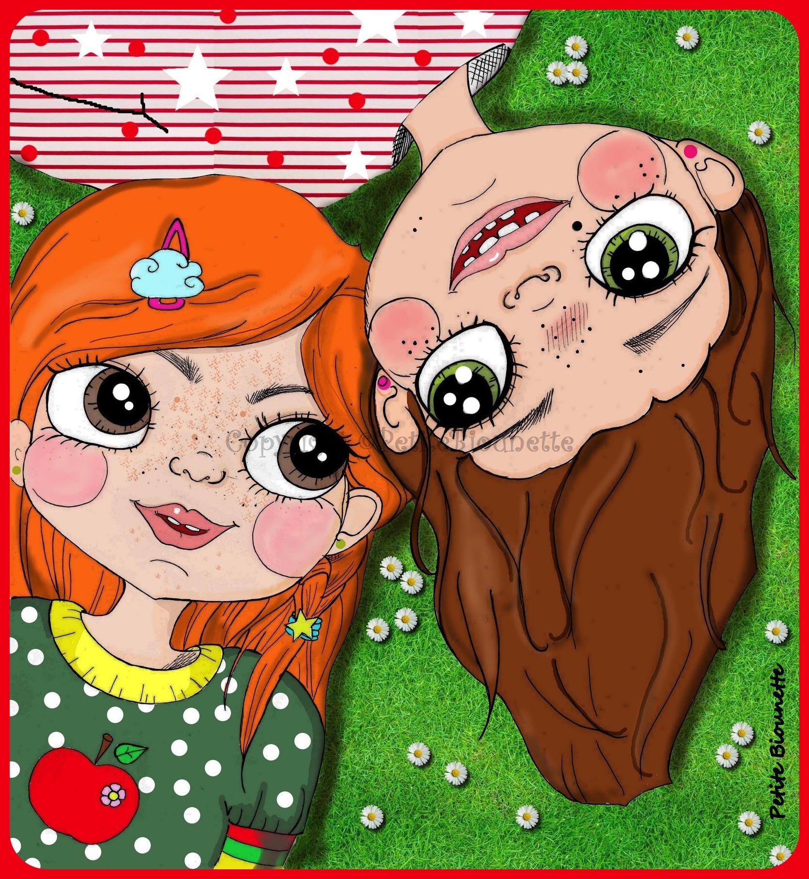 Coupon de Tissu Illustré "Complicité" par Petite Biounette.
