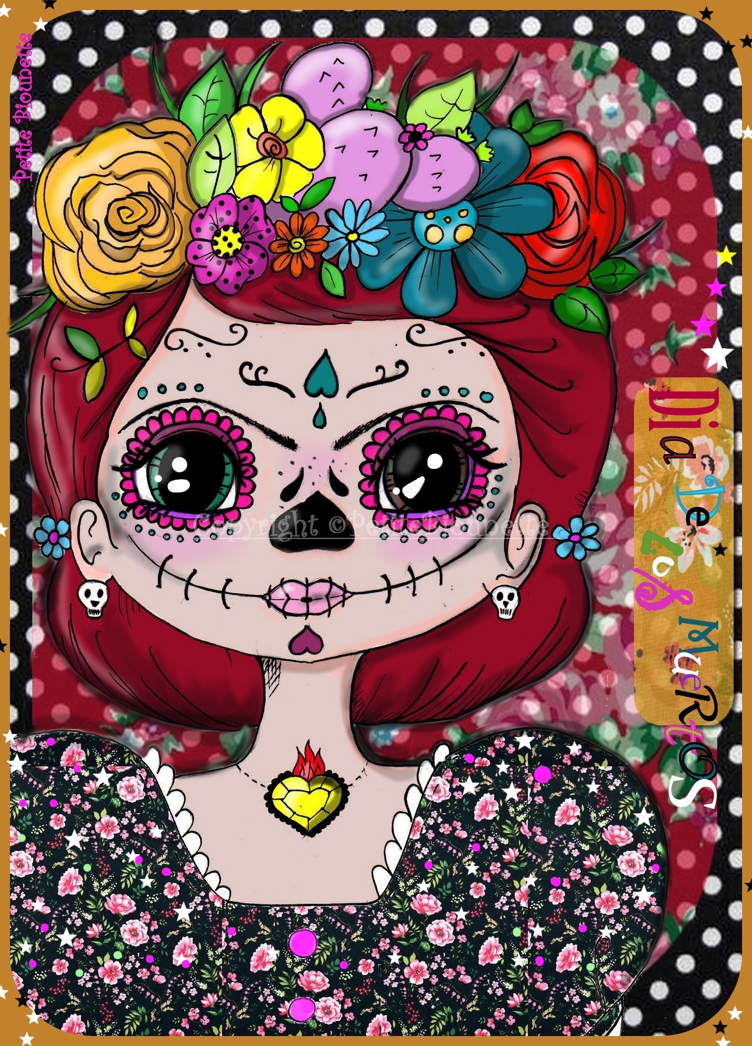 Coupon de Tissu Illustré "Dia de Los Muertos" par Petite Biounette.