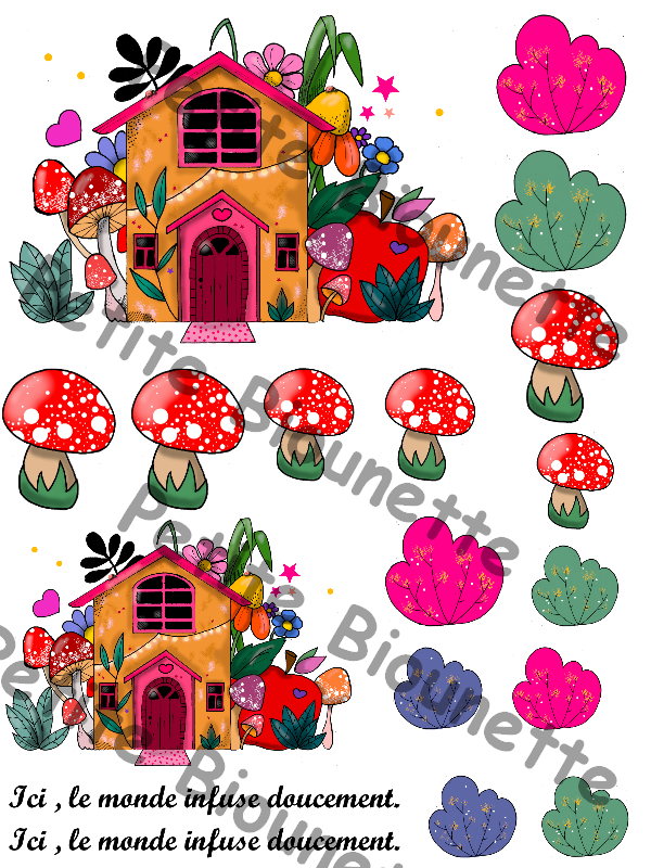 Cette planche de transfert UV dtf comprend les éléments pour décorer une théière et une tasse par exemple (voir photo)